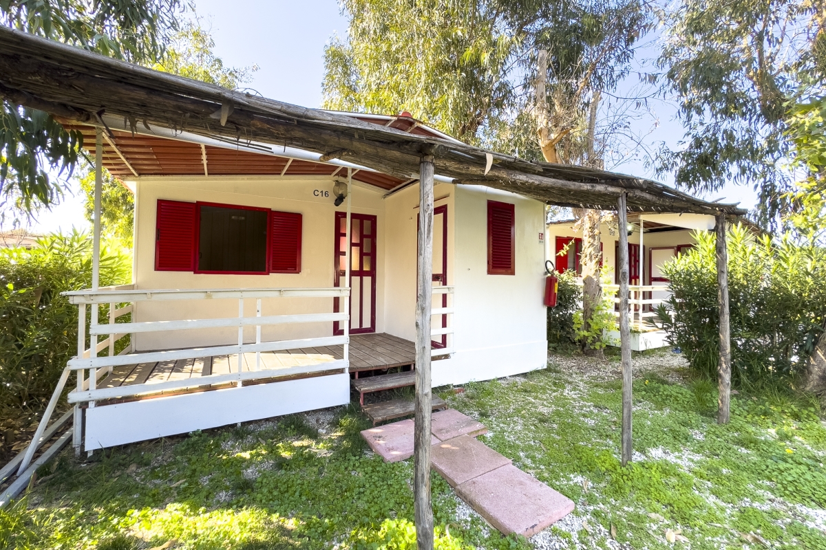Soluzione composta da una camera con letto matrimoniale, una camera con due letti singoli, bagno privato con doccia, piccola cucina attrezzata, veranda esterna coperta con tavolo e sedie.